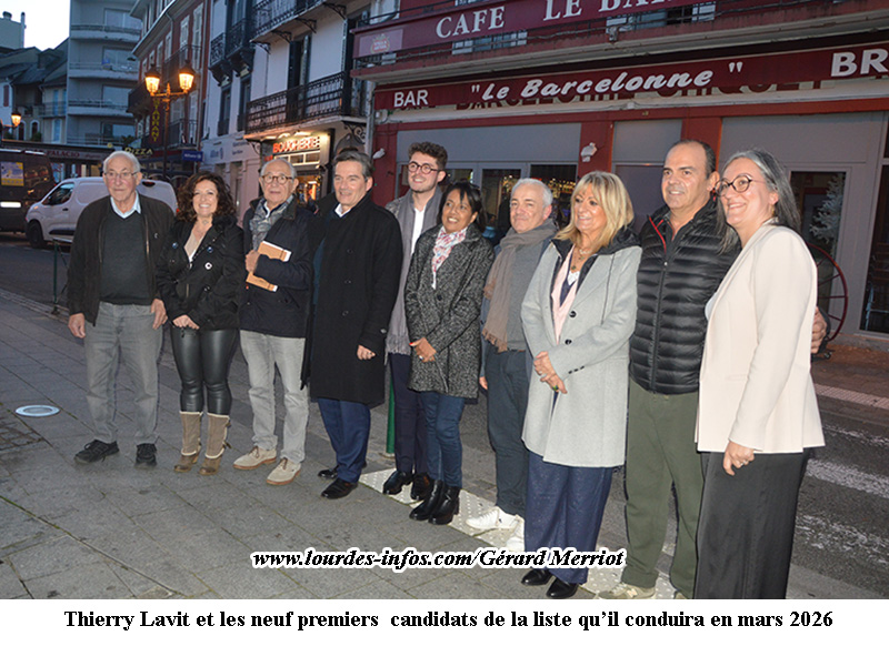 Thierry Lavit a laissé Rémi Buffo, son directeur de campagne et candidat, présenter les colistiers de “Lourdes, bien plus qu’une ville” qui se sont présentés, à savoir Jeanine Borde,conseillère municipale sortante, Firmin Lozano, conseiller municipal sortant, Cynthia Tounoukoin, conseillère municipale sortante, Frédéric Duplan, Elodie Deluca Courtade, Didier Lorio, Marie Etcheverry, conseillère municipale sortante, Jean-Michel Labady.