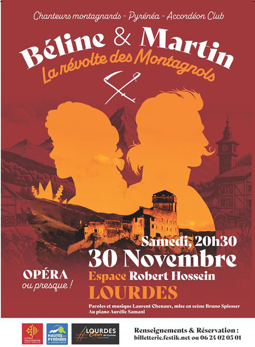 Réservation en ligne :https://billetterie.festik.net/association-des-chanteurs-montagnards-de-lourdes/product/beline-et-martin-ou-la-revolte-des-montagnols/