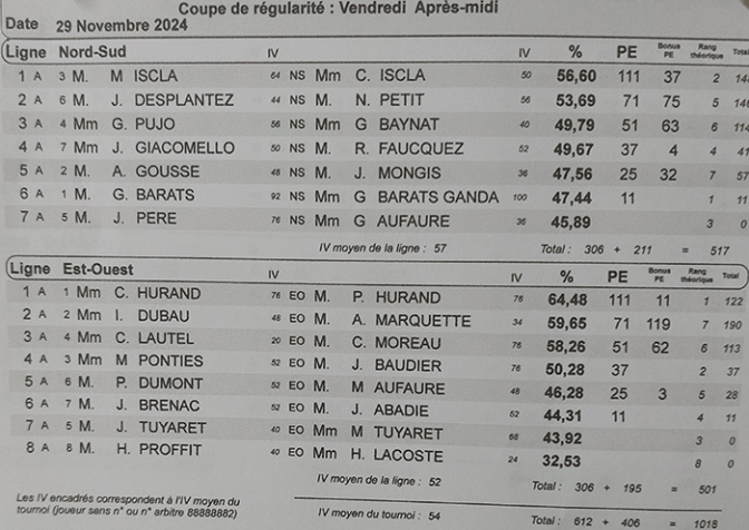 Ce vendredi après midi 29 novembre, le président Jacques Brenac et son Bureau avait souhaité organiser le traditionnel tournoi de bridge au profit du TELETHON.