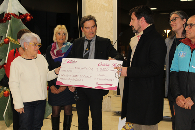 Hier jeudi 5 décembre 2024, a eu lieu, au palais des congrès, la remise du chèque suite à l’opération Octobre rose 2024 organisée au lac de Lourdes le 20 octobre. Etaient notamment présents le maire Thierry Lavit, Annette Cuq, présidente de la Ligue contre le Cancer des Hautes-Pyrénées, David Tournabien, président du Lions club de Lourdes et Joseph Muratore, président de l’Union Athlétique Lourdaise.