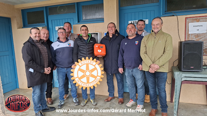 L’événement a été l’occasion de remettre officiellement un défibrillateur financé par le Rotary, suite à la sollicitation du maire, Jean‑Marc Boya. Frédéric Forio, président du Rotary Club de Lourdes, enfant du village et ancien joueur de l’US Adé, a immédiatement validé cette demande. Au moment de remettre ce défibrillateur, il était accompagné de Pierre Darré, ancien président, et de Bernard Cazaux, lui aussi ancien joueur du club, accueillis par les co‑présidents de l’US Adé, Stéphane Carassus et Régis Lages.