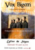 Vox Bigerri, chœur d’hommes spécialisé dans les Polyphonies des Pyrénées de Bigorre et de Béarn, est né du désir de faire sonner ce répertoire occitan en le confrontant avec d’autres polyphonies traditionnelles (Sardaigne, Corse, Pays Basque, Italie, Catalogne sud,…) et d’autres esthétiques musicales (créations contemporaines inspirée des mythes et des images légendaires). Né en 2004 au sein du conservatoire Henri Duparc à Tarbes, ce groupe s’est rapidement fait connaître dans divers festivals en France, Espagne, Belgique et Italie, pour son énergie en spectacle, pour la qualité de ses voix et son esprit convivial.