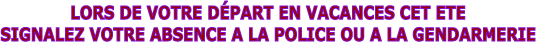 Pour en bénéficier, chacun peut appeler, pour la période du 6 juillet au 3 septembre 2012, la brigade de gendarmerie ou le commissariat de police de son lieu de domicile en signalant ses dates de départ et de retour, ses coordonnées en villégiature et celles d’un référent resté sur place (famille, voisin...).