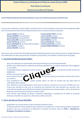 COMPTE-RENDU DE LA CONFERENCE DE PRESSE DU SAMEDI 25 MARS 2023 PARTI RADICAL DE GAUCHE (Communiqué
