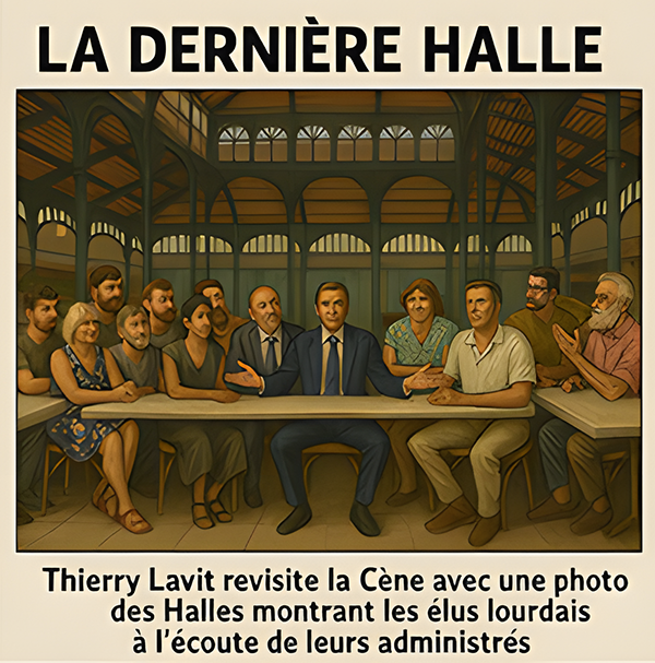 Dans un geste aussi audacieux que théâtral, le maire de Lourdes, Thierry Lavit, a décidé de revisiter la Cène… version halles municipales. Exit le pain et le vin, place aux pavés et aux promesses. La photo publiée sur Facebook montre Lavit entouré de ses apôtres municipaux, tous réunis autour d’une table dans les halles de la cité mariale, dans une mise en scène qui ferait pâlir Léonard de Vinci — ou le ferait éclater de rire.