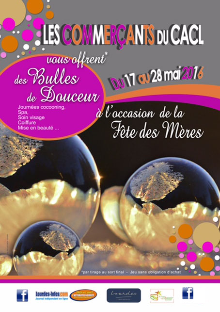 Ce sont 5 journées de rêves pour les mamans qui seront ainsi offertes par vos commerçants que vous retrouvez sur facebook https://www.facebook.com/commerce.lourdes