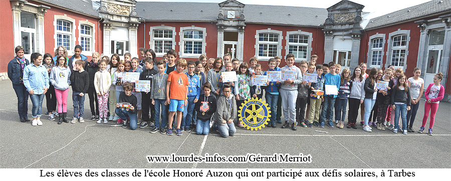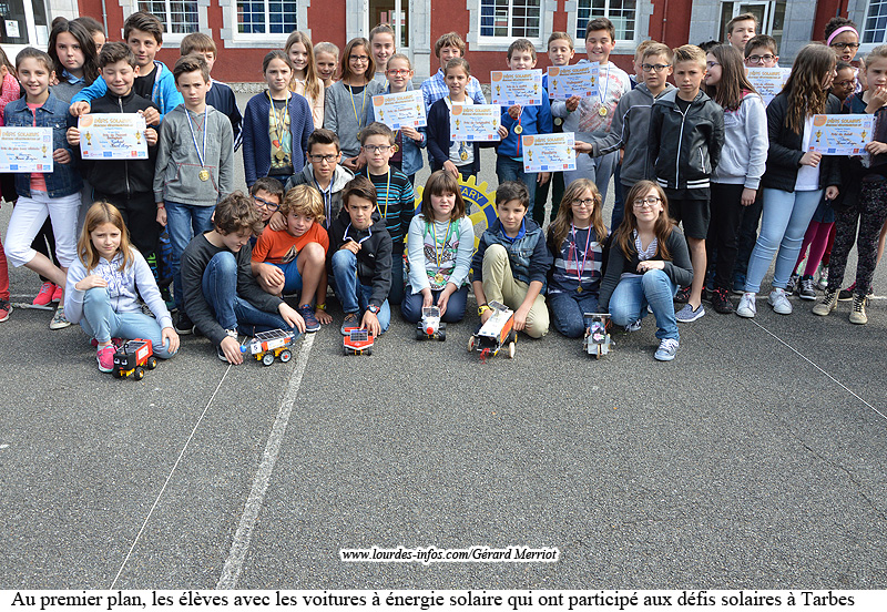 La voiture gagnante a permis à la classe de participer aux Rencontres qui ont eu lieu le 27 mai 2016, à la cité de l’Espace, à Toulouse. Les enseignants n’ont pas manqué de remercier les Rotariens lourdais venus constater dans la cour de l’école que ces petits « prototypes » fonctionnaient bien à l’énergie solaire. Le Rotary Club de Lourdes avait accordé une bourse de 300 euros, permettant de financer le bus jusqu’à Tarbes et l’achat de matériel pour ce projet.