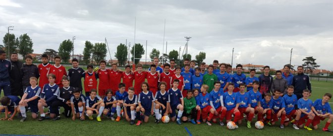 Au programme du premier jour, rencontres des benjamins et des minimes face à leurs homologues de la section sportive biarrote (victoire des benjamins de Sarsan 14-0 et défaite des minimes 1-2), temps libre avec notamment pétanque et "Pelote Foot" au chaleureux domaine du Pignada à Anglet et visionnage de la rencontre France - Cameroun en salle télé. Après une nuit officiellement douce et calme, le second jour a donné lieu au très attendu temps de baignade dans les eaux d’Hendaye avant de reprendre la route pour Lourdes, les paupières lourdes et le sourire aux lèvres...