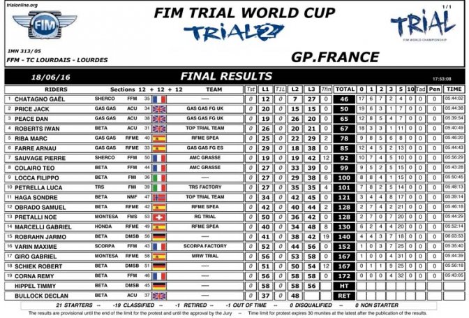 Le premier jour du championnat du monde de trial s’est déroulé dans des conditions climatiques difficiles. Les chemins secs de la veille sont devenus boueux ! Mais cela n’a pas empêché les aficionados de venir encourager ceux qui défient parfois la loi de la gravité. Tous devront parcourir les 12 zones de cette épreuve, à trois reprises et dans un temps limité de 6 heures.