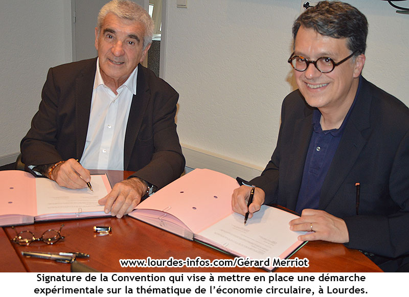 Signature cet après-midi de la convention visant à mettre en place une démarche expérimentale sur la thématique de l’économie circulaire sur les zones d’activités de Saux et du Monge à Lourdes