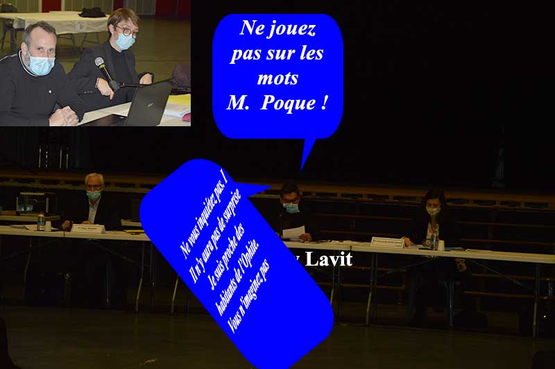 Julien Poque rebondit dans la foulée de la délibération précédente. Marie-Henriette Cabanne et le maire Thierry Lavit répondent avec hésitation.