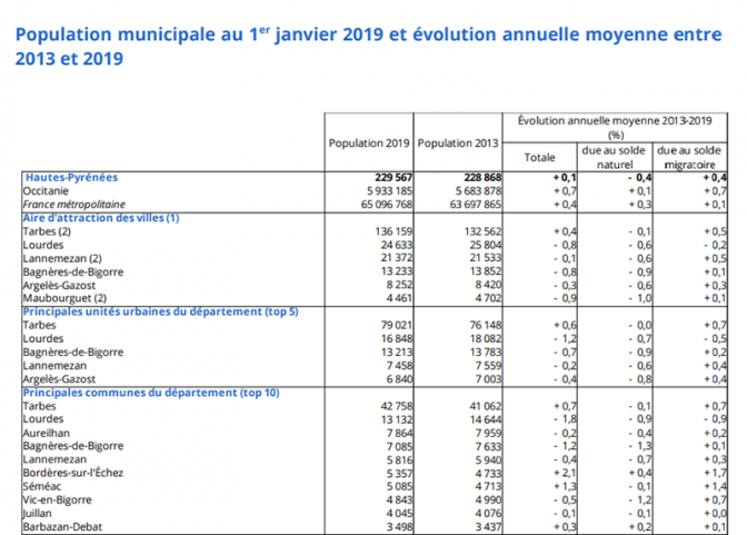 Accueil > L’ACTUALITE DE LOURDES > POPULATIONS LÉGALES 2019 Département des HAUTES-PYRÉNÉES (Communiqué INSEE (…)