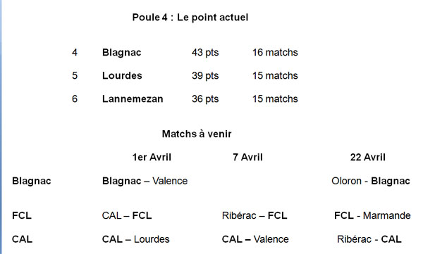 CA Lannemezan 36 FC Lourdes 19 (Mi-temps 19-12 pour Lannemezan)