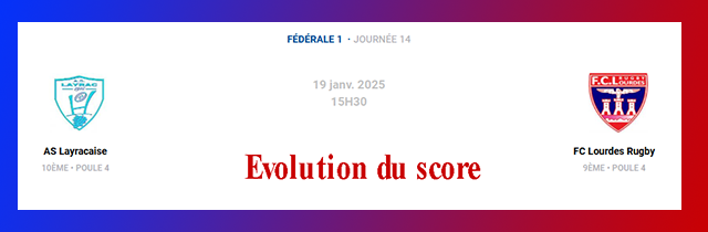 Fédérale 1 Journée 14 Poule 4 : Layrac - Lourdes (coup d’envoi 15h30)