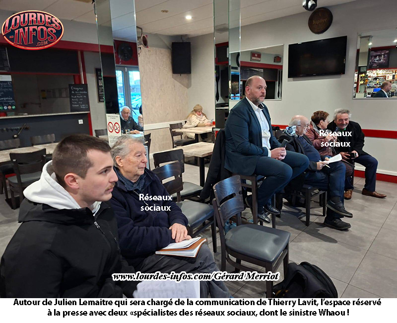 Nous reviendrons sur cette "conférence de presse" un peu spéciale puisqu’étaient présents deux adeptes des réseaux sociaux, dont le fameux sniper du maire de Lourdes, le sinistre Whaou ! La prochaine fois que ces deux plumitifs seront présents, nous ne couvrirons pas la conférence de presse. Pas de surprises sur les noms dévoilés, ils circulaient déja dans les conversations autour des halles. On vous en dit davanatage un peu plus tard...