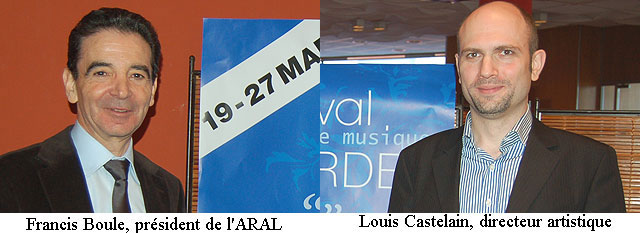 La conférence de presse qui s’est tenue à l’hôtel Saint-Sauveur a été l’occasion de présenter Louis Castelain et les nouveautés du festival 2010 qui se déroulera entre le 19 et 27 mars, avec cinq concerts au programme. Auxquels il faut ajouter - autre nouveauté - trois conférences. Le thème choisi est l’Italie.