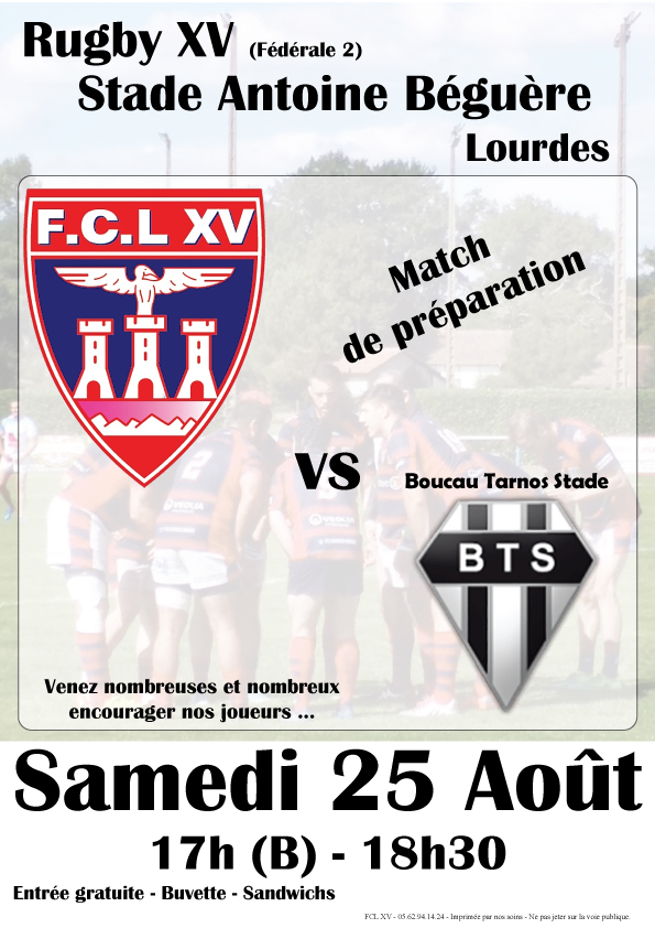Accueil > SPORTS > Rugby Lourdes > Amical : FCL-Boucau Tarnos (samedi 25 août 2018)