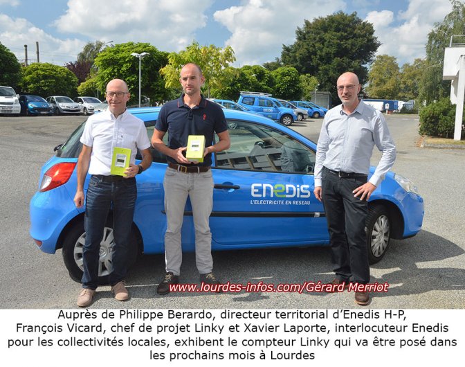 Ce vendredi matin, au siège d’ENEDIS à Tarbes, Philippe Berardo, Directeur territorial d’ENEDIS Hautes-Pyrénées, François Vicard, chef de projet Linky pour les Hautes-Pyrénées et Xavier Laporte, interlocuteur ENEDIS auprès des collectivités locales, ont tenu une conférence pour annoncer la pose des compteurs Linky à Lourdes dès le mois de septembre. Plus de 10 000 compteurs vont être mis en place sur une période de 6 mois. Il faut savoir qu’au 31 août, dans les Hautes-Pyrénées 55 864 compteurs ont été changés sur les 166 000 qui le seront d’ici 2021.