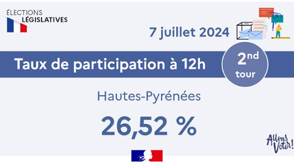Législatives 2024 2ème tour /Taux de participation à 12h dans les Hautes-Pyrénées