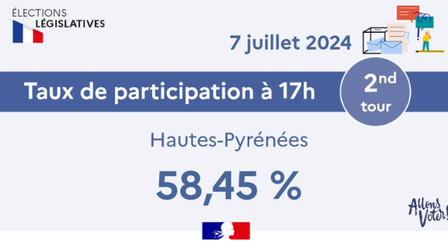 Elections législatives 2024/2ème tour : taux de participation dans les Hautes-Pyrénées, à 17h