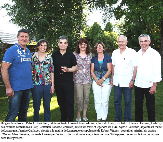C’est dans son village de Lamarque-Pontacq que Fernand Fourcade a choisi de présenter son livre « Echappées belles sur le Tour de France dans les Pyrénées ». Et c’est le premier magistrat Marc Bégorre qui lui a offert l’hospitalité à la mairie de la commune, entouré des membres de son conseil municipal ; de Robert Vignes, conseiller général du canton d’Ossun et maire de Juillan et de sa suppléante Jeanine Caillabet ; de maires ou d’adjoints des villages voisins et d’habitants du village.