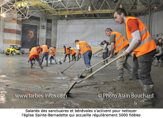 Ce matin, le service de communication des Sanctuaires a convié la presse à découvrir le paysage de désolation et les dégâts importants causés par la crue du gave. Le père Horacio Brito, recteur des Sanctuaires et Thierry Castillo, économe, ont répondu aux questions des journalistes. Nous mettons en ligne l’intégralité du point-presse et un premier diaporama qui situe bien l’ampleur de la tâche qui attend les entreprises, les salariés des sanctuaires et les bénévoles pour permettre une reprise rapide de la vie de ce haut-lieu de la chrétienté. D’ores et déjà un appel aux dons a été lancé par Mgr Brouwet, évêque de Tarbes et Lourdes. Ligne infos-dons : 05 62 42 82 82