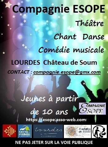 Rendez-vous le samedi 7 septembre sur le stand de la Compagnie ESOPE à la fête des associations (à côté de l’espace Robert Hossein) ou au château de Soum les mercredis 11 et 18 septembre (17h à 19h) et les samedis 14 et 21 septembre (10 h à 11h30) ; ou contactez-nous par mail compagnie.esope@gmx.com -