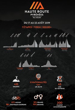 La 7ème édition de la Haute Route Pyrénées propose un parcours exceptionnel à travers la beauté sauvage des Pyrénées. Avec un nombre limité de villes étapes, une arrivée au sommet du Tourmalet, la double ascension de l’Aubisque et du Soulor ainsi qu’un contre-la-montre inédit sur le Col de Spandelles, la Haute Route Pyrénées est un défi unique pour chaque participant.