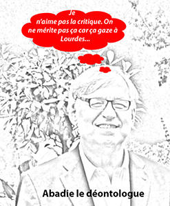Suite à l’article d’un lecteur paru sur notre site (NDLR. Lourdes-info s’écrit Lourdes-infos) le vendredi 9 août, Alain Abadie, l’actuel adjoint aux travaux qui est l’un des édiles lourdais sur lequel pleuvent de très nombreuses critiques, au point qu’il en ressort aujourd’hui mouillé (NDLR. C’est une image), a donc répondu en endossant l’habit du donneur de leçons de déontologie, ce qui est assez étonnant pour quelqu’un auquel nous suggérerons de balayer d’abord devant sa porte. Il a profité de ce dernier week-end pour travailler sa prose, en allant de toute évidence chercher son inspiration à l’extérieur, au moment où l’on revoyait, en début de semaine, certains visages de la maison du peuple de retour dans notre cité. (...)