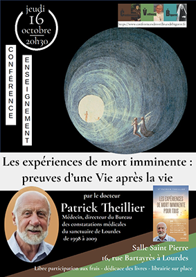 Après l’émotion suscitée par la conférence d’Antonia Acutis, les Veilleurs de Bigorre poursuivent leur cycle avec trois rendez-vous marquants. Le jeudi 16 octobre à 20h30, à la salle Saint-Pierre, le docteur Patrick Theillier, ancien responsable du Bureau des Constatations Médicales de Lourdes, interviendra sur les expériences de mort imminente. Sa conférence, intitulée « Preuves d’une vie après la vie », promet un dialogue entre science, témoignages et spiritualité.