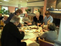 Les résidents se sont associés à cette cause qui leur tient à cœur et on confectionné des objets à vendre au profit du téléthon. Nous avons aussi bénéficié de dons d’objets divers à vendre pour cette occasion. Une banderole faite « mains » encadrait notre stand !