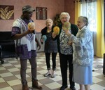 L’Afrique à l’honneur le temps d’un repas et d’un concert. Pour cette occasion les résidents ont confectionnés des masques africains qui allaient décorer les tables de la salle de restaurant. Puis ils ont eu la joie d’accueillir Sassou, un des membres du groupe « TOGO TEMPO », qui a enchanté nos aînés avec des chants traditionnels africains mais aussi du répertoire français. Transformés en musiciens, ils ont accompagnés Sassou au son des maracas avec perles et ont voyagés en Afrique le temps d’un après-midi.