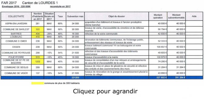 Canton de Lourdes 1 : répartition de l’enveloppe du FAR 2017