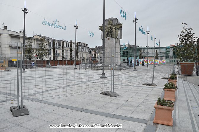 Après la fermeture du parking Peyramale, c’est au tour de la place Peyramale (place du Monument aux morts) d’être interdite au public !