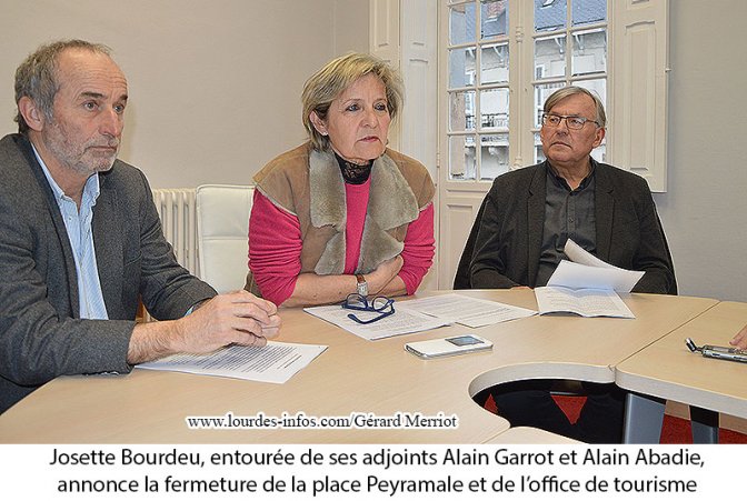 Décidément le mauvais sort s’acharne sur la ville de Lourdes et sa municipalité. Josette Bourdeu, maire de Lourdes et deux de ses adjoints Alain Garrot et Alain Abadie ont tenu en fin d’après-midi une conférence de presse pour donner une information qui va encore accroître la colère de la population. Après la fermeture du parking Peyramale intervenu au 1er janvier 2018, suite à un arrêté de la maire de Lourdes au nom du principe de précaution, c’est maintenant la place Peyramale (place du monument aux morts) qui a été fermée aujourd’hui. Ce qui signifie entre autres qu’il n’y aura plus, en cet endroit, de cérémonies patriotiques jusqu’à nouvel ordre. Où se déroulera la grande cérémonie du Pèlerinage Militaire International ? La maire de Lourdes s’interroge. L’office de tourisme doit également fermer. Le personnel doit être relogé. On ne sait pas où ! L’espace jacquaire, place Jeanne d’Arc, accueillera le public. L’agence immobilière qui se trouve à hauteur de la chaussée doit être déplacée. La ville de Lourdes, ses commerçants et ses habitants se seraient bien passés de cette « tuile » supplémentaire. Inévitablement, Lles réactions ne vont pas manquer.