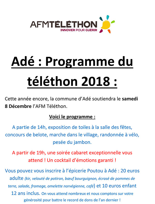 Adé : Programme du téléthon 2018