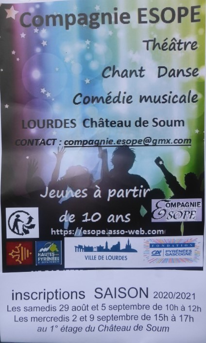 L’équipe dirigeante met en place de nouveaux projets pour la saison 2020/2021, et c’est avec plaisir que nous accueillerons au sein de la Compagnie ESOPE de nouveaux "jeunes artistes amateurs" pour leur faire découvrir les différentes disciplines de la Comédie Musicale, dans un esprit de tolérance et de partage.