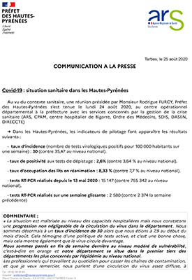 Covid -19 : situation sanitaire dans les Hautes-Pyrénées (Communiqué Préfet)