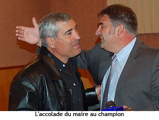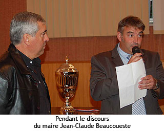 Jean-Claude Beaucoueste, maire de Saint-Pé a remis au nom de la municipalité et des Saint-Péens à Alain la médaille de la ville de Saint-Pé … une récompense de plus qui complètera les trophées gagnés au ball-trap, mais aussi à la pétanque, car Alain tire aussi bien sur les fosses qu’au boulodrome !