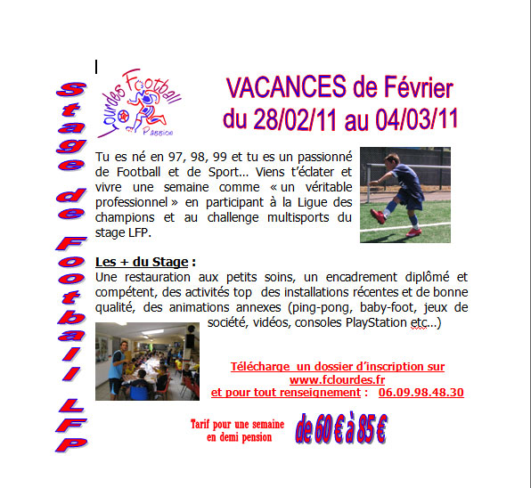 Accueil > SPORTS > Football Lourdes > Stage de football LFP (vacances de février)