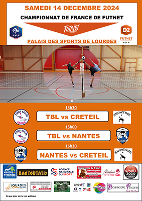 Le Tennis Ballon Lourdais reçoit pour le compte de la 2ème journée du championnat de France de Futnet, Créteil le leader et Nantes 4ème.