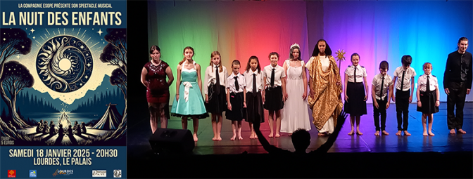 La Compagnie Rouge/Esope donnera une représentation de son spectacle musical « LA NUIT DES ENFANTS » le samedi 18 janvier 2025 à 20h30 à Lourdes, salle du Palais.