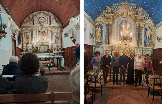 Enfin, Madame Wittendal narra les réflexions et les émotions qui lui permirent les mises en peinture. Le maître autel l’inspira pour décorer l’autel post conciliaire : ponçage pour faire apparaitre les décorations des chapiteaux, reprises des effets marbrés des colonnes, de la table et du socle à l’identique du retable XVIIIème, inscrit Monument historique. Elle a également remis en propreté la porte de l’église dégradée par des années de soleil... Enfin Monsieur Christian Cacha a implanté une armoire dans le même style que le mobilier présent pour habiller de chêne la sonnerie des cloches, les compteurs…et Monsieur Sébastien Lopez a vitrifié le parquet.