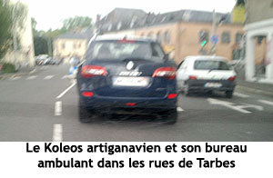 Artiganave va beaucoup miser, on vous le dit plus haut, sur son staff de communicants pour sa campagne des législatives. En la matière, c’est loin d’être gagné. Ce jeudi soir, pour le meeting de l’UMP à Tarbes, l’actuel maire de Lourdes avait transporté dans son Koleos (notre photo) son fameux bureau ambulant. Lequel a pris une belle leçon de com’. On s’explique : avant que démarre ledit meeting, le service communication de Gérard Trémège, maire de Tarbes, avait les yeux braqués sur les smartphones. Il guettait la déclaration de François Bayrou qui devait annoncer son vote pour le second tour. Pour le staff d’Artiganave, c’était le cadet de ses soucis. On préférait papillonner dans le couloir ! Quand la nouvelle de François Bayrou annonçant son vote pour François Hollande a été connue, Gérard Trémège en a été immédiatement informé. Et il a pu en faire état d’entrée dans son discours, déclenchant les huées du public. Évidemment, « Arti » n’en a pas dit un mot. Il a une excuse : il ne savait pas ce qu’avait annoncé son ancien « compagnon de route » béarnais.