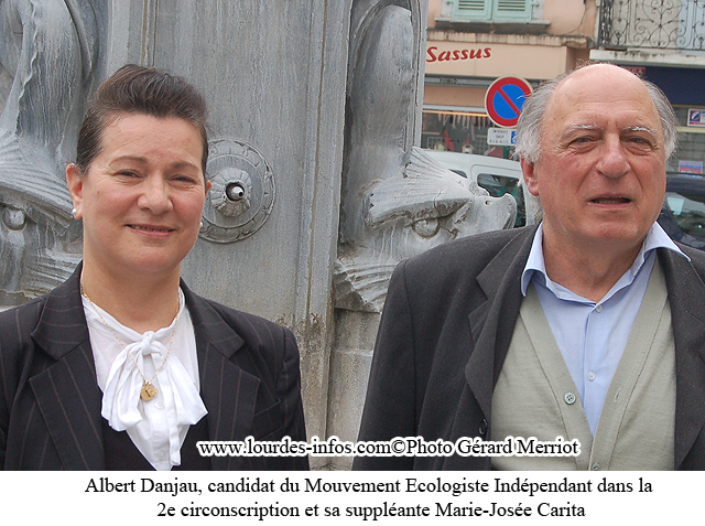 Le Lourdais Albert Danjau sera candidat pour la 4e fois à une élection législative. Ce chef de district SNCF à la retraite, a participé à des nombreux combats en tant qu’écologiste. Il se lance donc dans la bataille des élections législatives 2012 avec Marie-Josée Carita pour suppléante. Cette dernière, retraitée de l’enseignement, est retirée à Argelès-Gazost où elle est impliquée dans des œuvres caritatives. Tous deux entendent défendre leur programme de manière indépendante. Les problèmes de l’eau leur paraissent prioritaires. Ils veulent promouvoir entre autres l’agriculture biologique, les énergies nouvelles. Albert Danjau a répondu à nos questions…