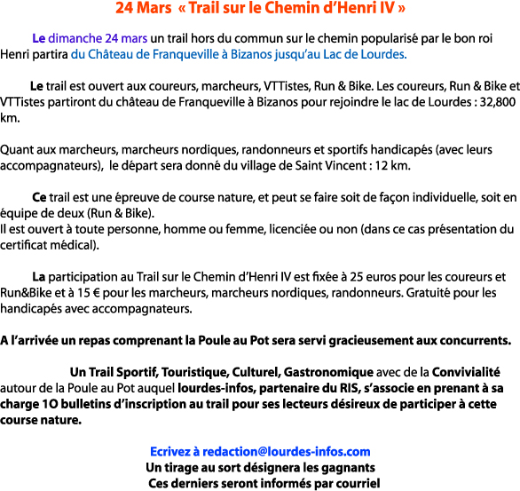 1er trail sur le chemin d’Henri IV : gagnez votre bulletin d’inscription