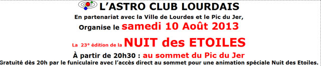 la 23° année, que l’ASTRO CLUB LOURDAIS participe à cette Nuit des Etoiles, et